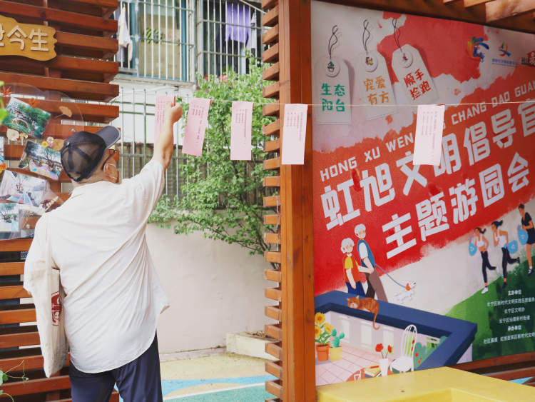 “夜间遛狗的时候可以用什么照亮前方?”“作为文明的狗主人,狗狗的便便您是如何处理的?”……在新时代文明实践知识问答互动专区,一群喜欢“毛孩子”的居民争先恐后地摘下问题卡抢答,由工作人员揭晓答案,不一会就答对了3道题拿到了“宠爱有方”的勋章贴纸。