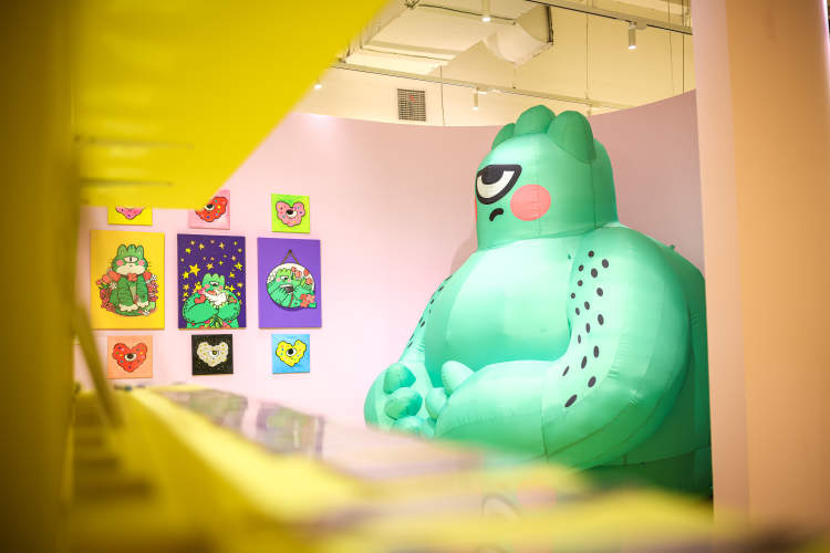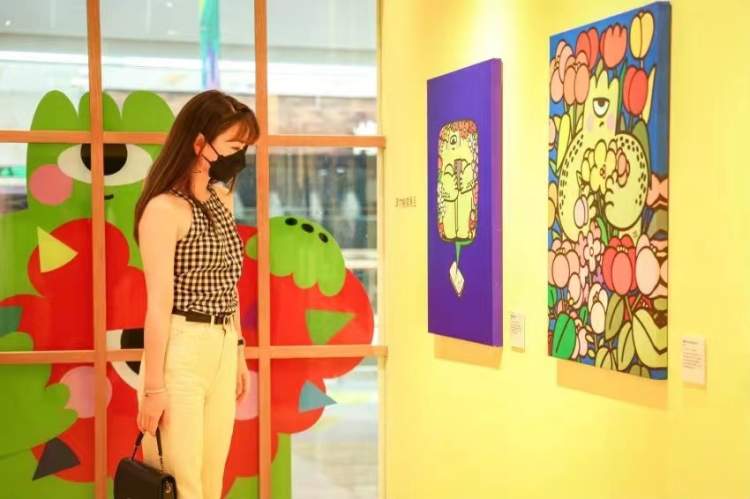 参加完仪式,搭乘电梯到7楼,便能看到刚刚拉开帷幕的“HUG HUG一起抱抱”艺术展了。这一展览汇集了9位中外插画师,他们的艺术作品以原作、限量复刻品、插画元素衍生装置、互动空间、影像等不同形式展出,全方位打造沉浸式艺术空间。