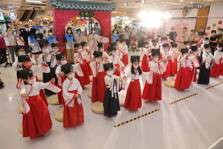 开学在即,五角场商圈百联又一城再度举办了“开笔礼”。“开笔礼”是中国传统对少儿开始识字学礼的一种启蒙教育形式,也是古代读书人的四大礼之一。