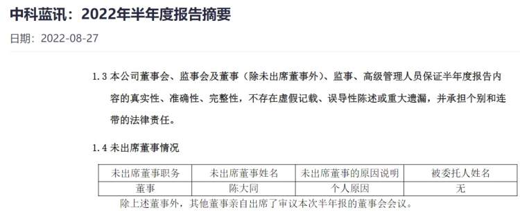 8月25日中际旭创审议半年报的董事会会议,他也因个人原因未出席;8月26日,陈大同同样因个人原因未出席中微公司的股东大会以及中科蓝讯的董事会会议。
