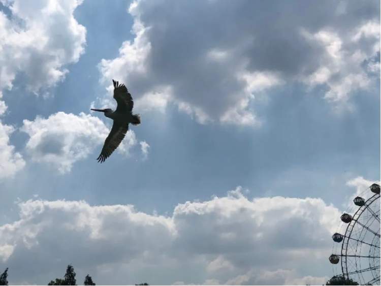 除了观赏飞行表演之外,游客有时候也会看到在天鹅湖上空盘旋的鹈鹕,有些飞一圈就落回湖面,有些则是越飞越高越飞越远,让人不禁担心:这些鹈鹕会不会飞走了不回来了?
