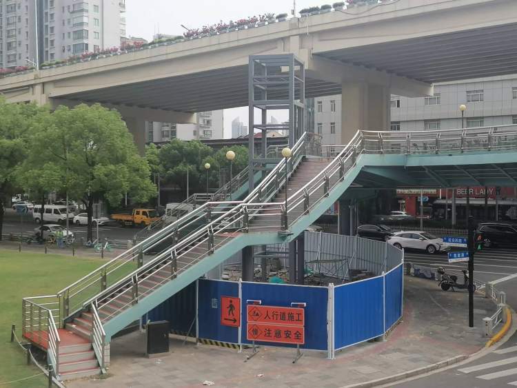 沪上有一座人行天桥非同一般,它不仅与地铁3、4号线车站连通,还衔接着中运量71路车站。它就是延安西凯旋路人行天桥。遗憾的是,这座天桥一直没有电梯,上去要走39级台阶有点吃力。好消息来了!加装电梯的施工已经开始,目前已在四个位置搭建好了电梯的框架。据项目经理披露,今年11月份有希望建设完毕,验收后启用,到时大家可以乘坐电梯上下了。