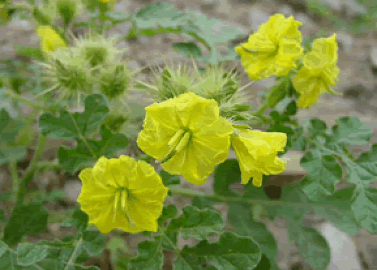 刺萼龙葵又叫黄花刺茄,原产于北美洲,在我国北方泛滥成灾,它的根系十分强大,很难完全消灭,枝干上布满尖刺,其他植物和动物都很难靠近。