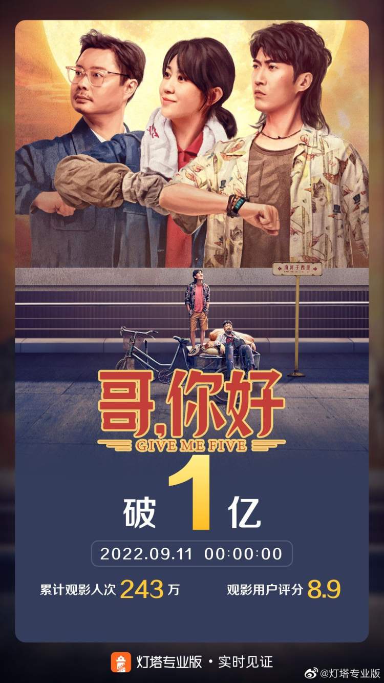 中秋节首日《哥,你好》票房破亿! 杨婷婷 2022-9-11 来源:周到上海 记者从灯塔专业版实时数据获悉,截至9月11日0时0分,影片《哥,你好》票房突破1亿。 《哥,你好》由张栾执导,马丽、常远、魏翔领衔主演,讲述了掌握时空密码的小伍(常远 饰)在一瞬间回到了过去,亲眼目睹母亲大六(马丽 饰)喜欢父亲老伍(魏翔 饰),决定帮助妈妈“追爱”,于是发生了一系列令人啼笑皆非的搞笑故事。 豆瓣网友评价这部影片:简简单单,温馨感人,能带父母一起看就够了,对普通观众很友好。 来源:周到上海 作者:杨婷婷 赞一个 (0)