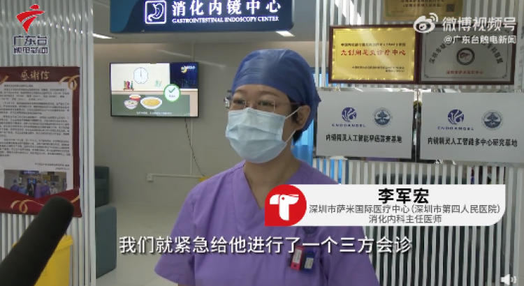 深圳市萨米国际医疗中心(深圳市第四人民医院)消化内科主任医师李军宏表示,“当时病情还是挺危急的,我们就紧急给他进行一个三方会诊,包括麻醉科、胸外科。如果他并发食管穿孔,那有可能需要胸外科的介入治疗。”