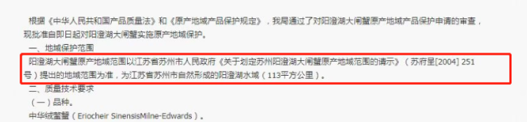 且根据《阳澄湖大闸蟹地理标志产品保护要求》(原质检总局2005年第71号):