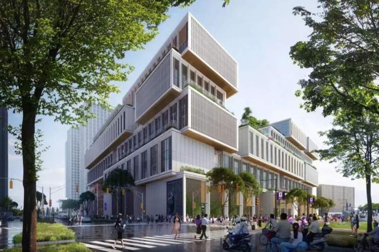 四栋楼合围的前滩新校区,运用可持续发展的理念,根据校园功能分区排布、师生活动路线规划,合理有效地优化了设计,把一个原本需要几倍甚至几十倍占地面积才能放下的大学校园,巧妙地放入一个建筑综合体中,既集约利用了土地和空间,又不会让师生感觉逼仄或拥挤。