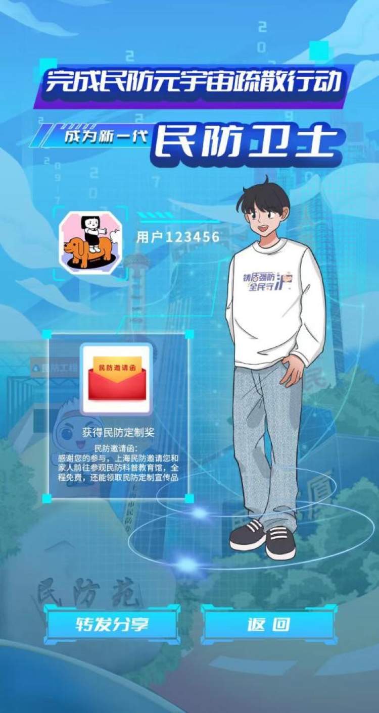 据了解,该游戏设置交互小游戏、民防知识、抽奖赢大礼、分享好友等功能模块。通过集齐应急物品、寻找民防工程、体验防空疏散、民防工程问答等形式,串联人防演练全过程,让市民拥有虚实结合的防空数字化新场景和沉浸式体验。