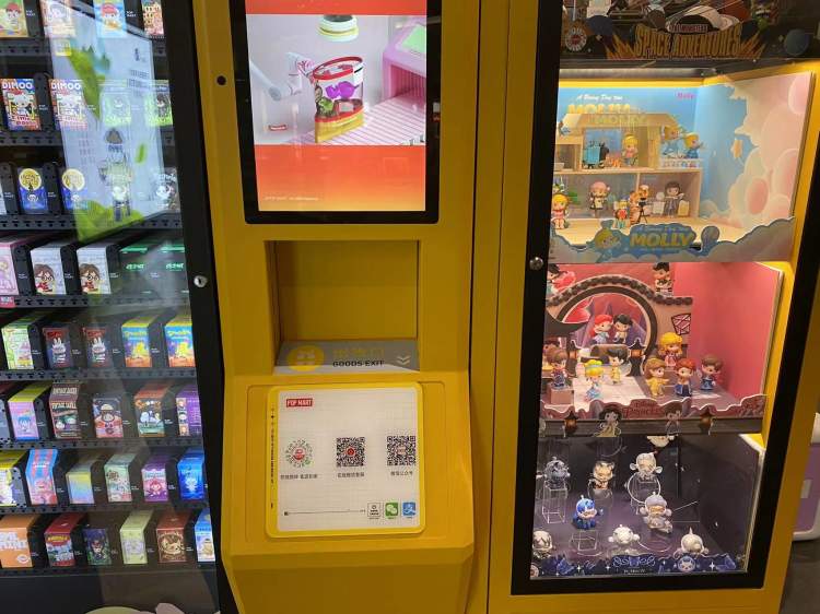 问题较为严重的依然是无人贩售机,在协信星光广场B1层的POP MART贩售机,记者看到整个机身上不仅没有任何关于盲盒商品的信息公示,也没有对未成年人购买商品的温馨提醒。消费者只需要用手机扫一扫,进行付款即可购买盲盒商品。