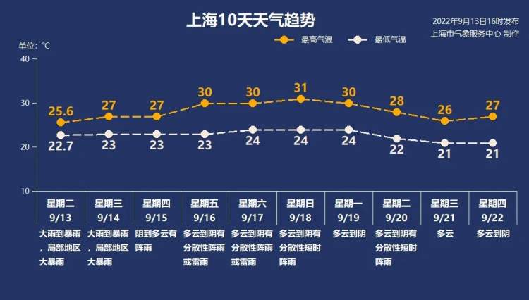16~18日,受“梅花”残留云系影响,上海以多云到阴的天气为主,有分散性阵雨或雷雨。最高气温重回30℃。