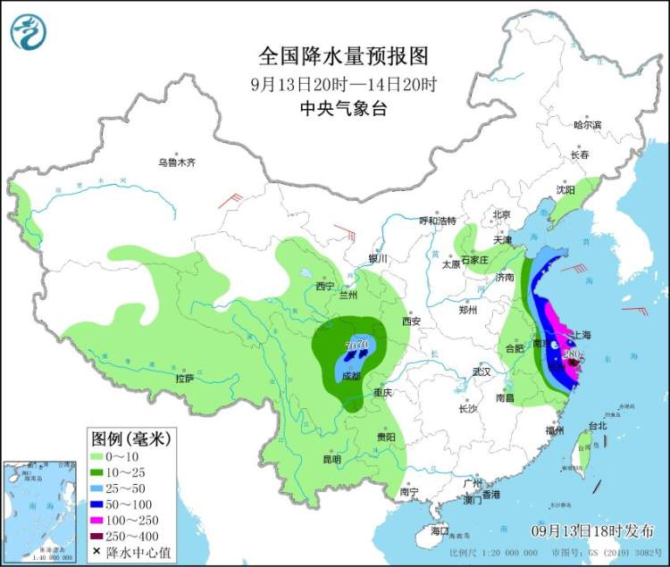 受台风“梅花”倒槽影响,今天傍晚到夜里本市有阵雨或雷雨,累积雨量30~50毫米,局部地区70~100毫米。