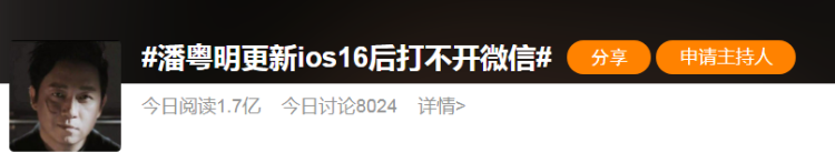 不久后,#潘粤明更新 iOS16 后打不开微信# 也冲上了微博热榜。