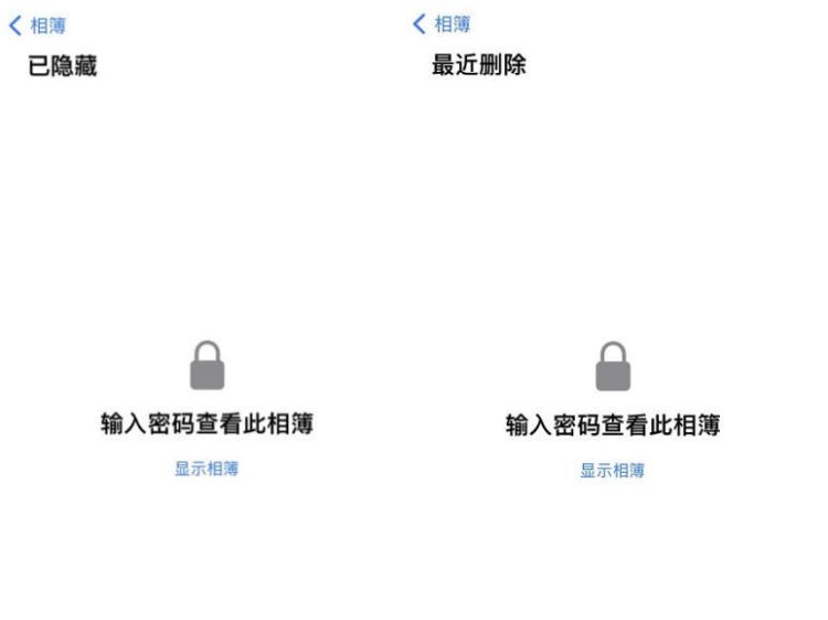 相册中的“已隐藏”和“最近删除”中增加了安全验证,都需要通过密码或者面容 ID才能查看。