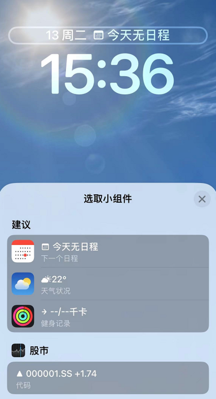 锁定屏幕上还可以选取小组件让各类信息一览即得,如天气、电池电量和临近的日历日程等↓