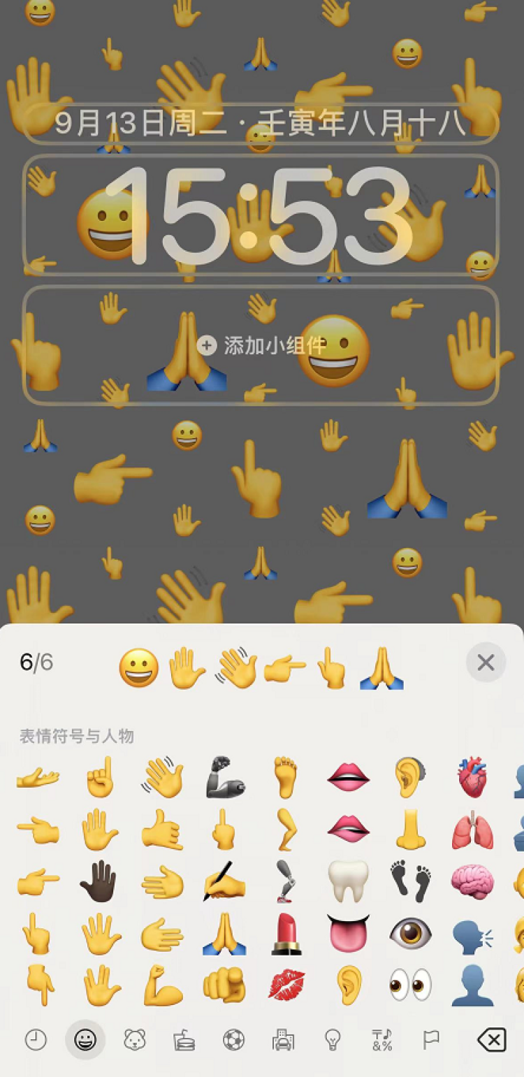 比如在表情符号锁屏中,可以自选最多6个表情符号生成一张最新的壁纸↓