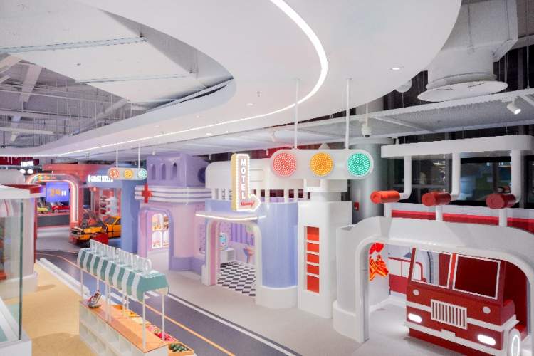 摩都占地面积1200平米,以“汽车小勇士穿梭时空,再现地下汽车城“为故事主线,囊括7大主题空间,38个沉浸式汽车互动体验项目。