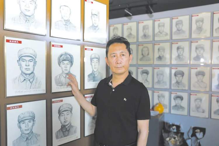 安徽师范大学美术学院学生正在为烈士画像。王 伟摄