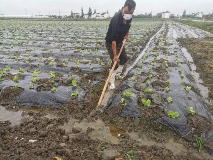 除了对大棚加固,在露天基地里,工人们也忙着清理沟渠。原本25公分的明沟加深到30公分左右,全力排水以保证蔬菜正常生长。