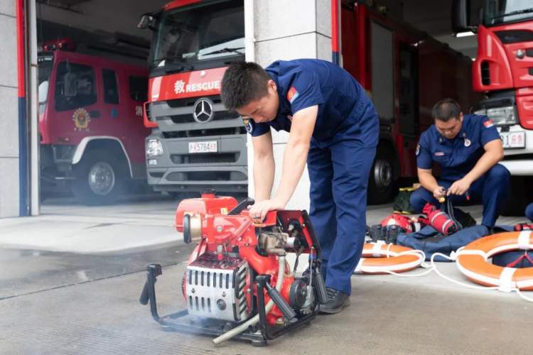 同时,各消防救援站针对往年辖区内台风暴雨天气下易积水区域提前准备部署,对执勤车辆、随车器材、通讯设备和防台防汛必需物资进行再检查、再保养,确保器材装备在关键时候能够拿得出,用得上。