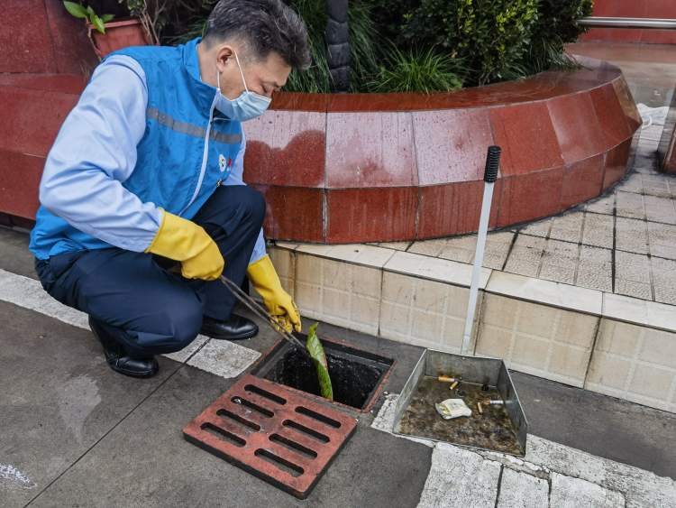 为了在大雨或暴雨情况下,站点内的下水道口能及时顺利的进行排水,巴士五公司劳模徐永青带领志愿者打开下水道井盖,用铁钳夹出里面的垃圾,提前疏通管道,确保排水顺畅。