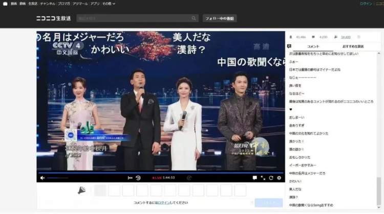 实时同传,弹幕陪看!国际视频通讯社首次联络日本主流视频网站Niconico同步播出总台秋晚节目,主持人串词配上日语同传,实时在线观看人数达4.2万,弹幕评论4700余条,节目好评率达95.5%。