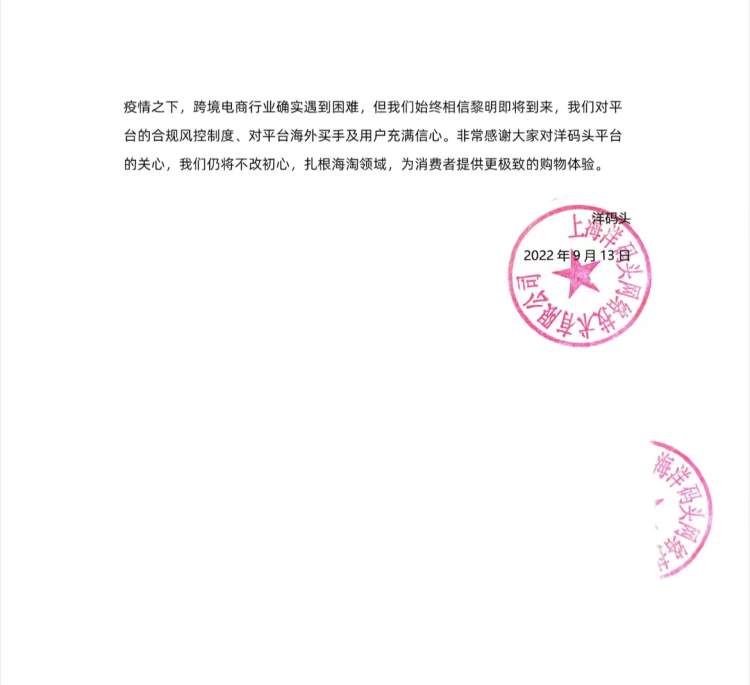 此前8月21日,洋码头创始人曾碧波发出了一封长达5000多字的公开信,一气呵成。曾碧波说:整整12周年,洋码头经历了中国跨境进口电商行业的多个周期,起起伏伏,好的坏的日子,有钱的没钱的日子,有流量没流量的日子都挺过……走到今天,这次寒冬出奇的冰冷,今年的日子真的太难过了。很多值得尊重的同行们也都选择退出了,改赛道的改赛道,关停的关停,爆雷的爆雷,也有几个同行陆续传来一些负面。
