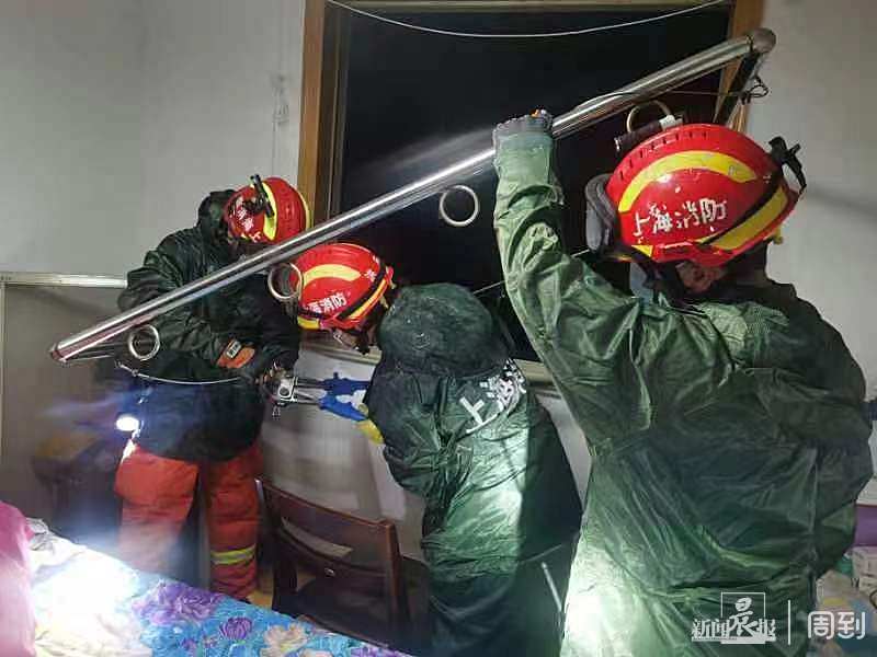 无独有偶,9月15日凌晨1点55分,台风登陆后,浦东新区消防救援支队庆宁消防救援站接到报警,称沪东路一户住在6楼的居民家中,阳台外的雨棚被台风吹得摇摇欲坠,随时有高坠危险。