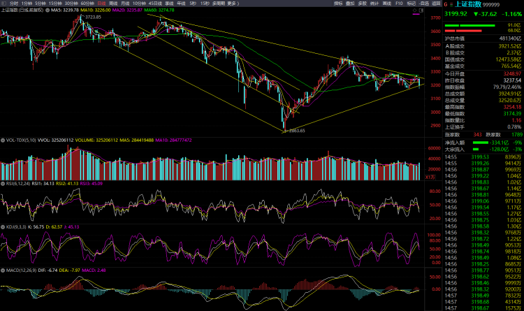 今天,沪深两市双双高开,盘中煤炭开采加工板块异动,安源煤业涨停,山西焦煤、潞安环能、淮北矿业、平煤股份、山煤国际等跟涨;汽车整车板块拉升,亚星客车(600213)三连板涨停,中通客车(000957)、海马汽车(000572)、金龙汽车(600686)、中集车辆(301039)、安凯客车(000868)等跟涨。午后,房地产板块活跃,但其它板块纷纷大挫。最后沪市下跌1.16%,报收3199点;创业板大跌3.18%,报收2424点。两市全天成交额9191亿元。
