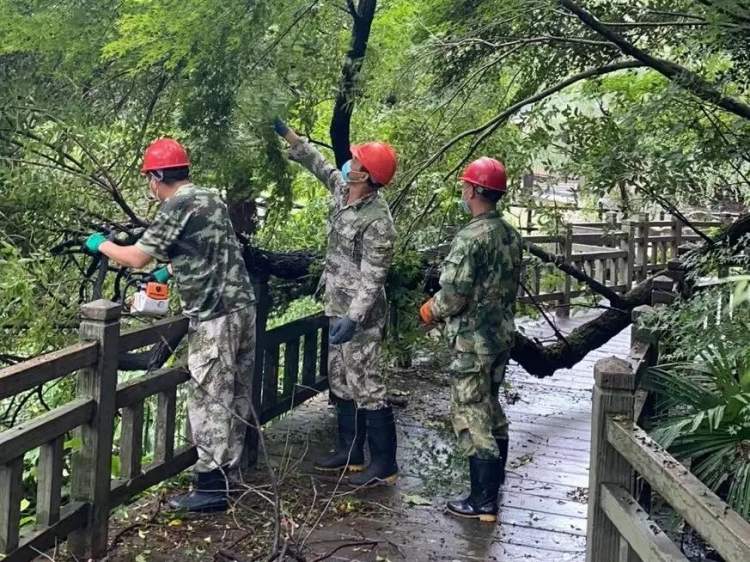 今天一早,台风减弱后,上海动物园的绿化抢险队立即出动,对园内倒树、落枝、落叶进行清理,保证一级园路畅通,为正常开园做好准备。