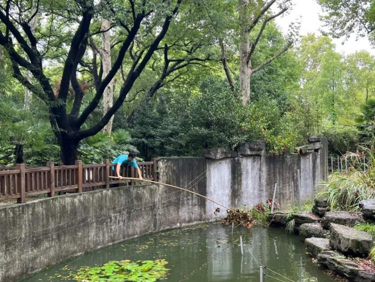 熟悉上海动物园的朋友都知道,每每台风过境,多少会给饲养员添点“装备”,“梅花”也不例外。一早,饲养员们就出去挑挑捡捡,变废为宝。
