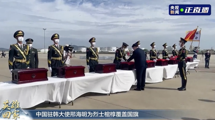 今天,接英雄回家! 2022-9-16 来源:央视新闻 今天(16日)上午 中韩双方在韩国仁川国际机场共同举行 第九批在韩中国人民志愿军烈士 遗骸交接仪式 88位中国人民志愿军烈士遗骸 及相关遗物,将返回祖国 上午8时许 志愿军烈士棺椁覆盖国旗 在场人士向烈士遗骸三鞠躬表示哀悼 随后,中国人民解放军礼兵 手捧烈士棺椁登上运-20专机 英雄回家,共同见证! 离家尚是少年之身 归来已是报国之躯 70余年 祖国从未忘记,人民从未忘记 今天,祖国接你们回家! ▌本文来源:央视新闻微信公众号(ID:cctvnewscenter) 更多新闻 监制/徐冰 主编/杜显翰 总台记者/张昀 唐鑫 卢星海 视频编辑/乃扎尔 制图/孟祥龙 编辑/秦静 校对/高少卓 ©央视新闻 山河已无恙,英雄归故乡↓↓↓ 赞一个 (0)