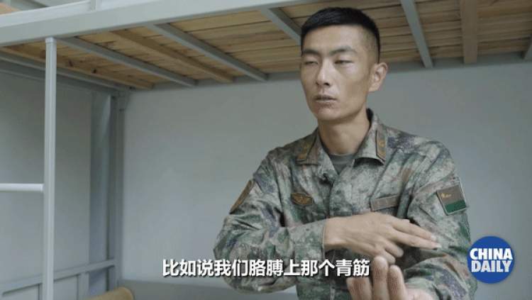 结束训练回到宿舍,战士们脱衣服脱到一半,手却抬不起来了。想起当时和战友你瞅我,我看你,相互帮忙才把衣服脱下来的场景,朱海超笑着说“后期大家就把苦变成乐了”。