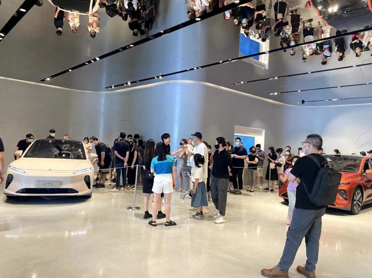 刚刚过去的中秋小长假期间,不少国产品牌新能源车展厅门庭若市,消费者排队等着销售接待。在上海万象城蔚来汽车展厅,销售人员在门口维持秩序,请消费者排队取号进店看车,拿号要等至少半小时。