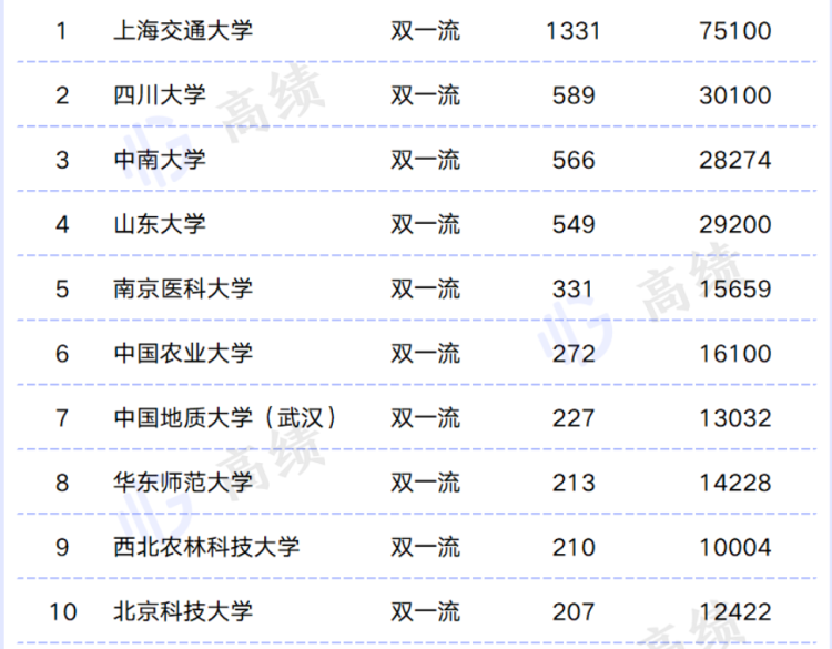 其次是四川大学、中南大学、山东大学,立项数超500,资助经费近3亿。