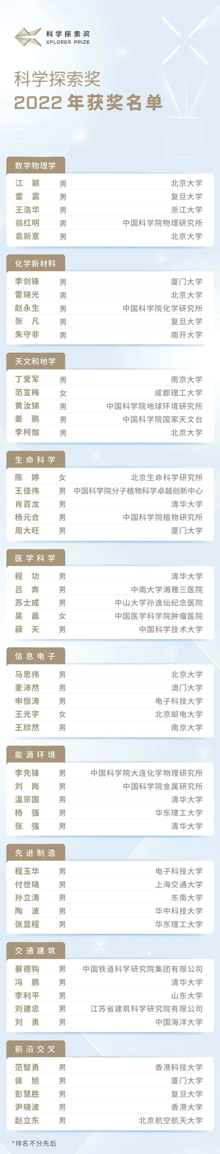 科学探索奖2022年获奖名单
