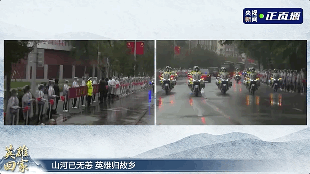 冒雨列队迎接英雄回家