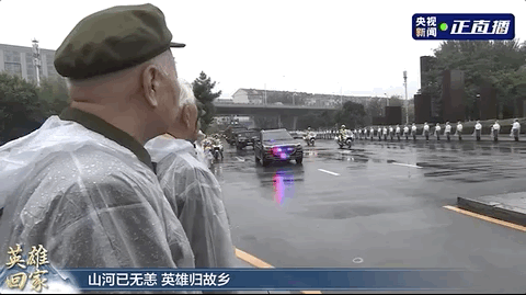 志愿军老战士雨中敬礼