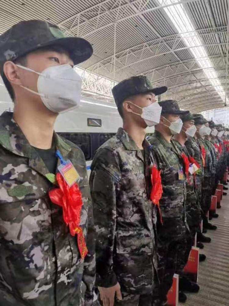 为提高适应能力,提早进入新训状态,本市上下半年都在起运前集中新兵严格封闭管理,开展了不少于10天的役前教育,确保疫情零感染、无传播。