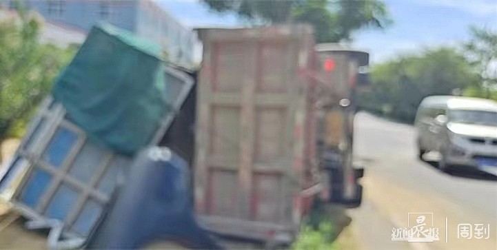 ▲大货车侧翻在路边