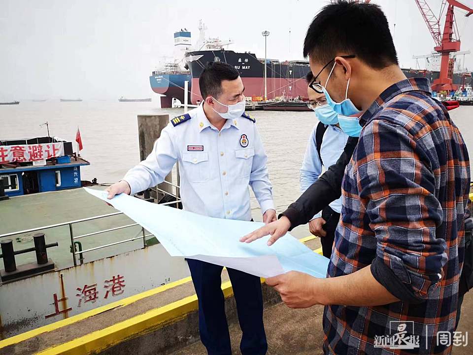 ▲孔祥松在码头疏浚施工现场讨论施工方案