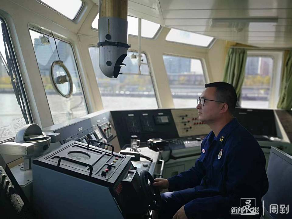 ▲孔祥松在驾驶消防船