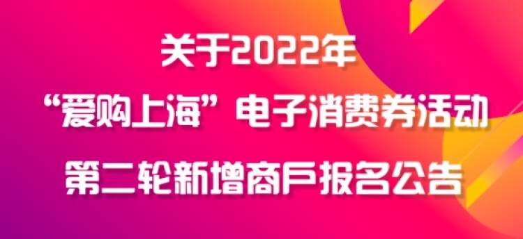 市商务委本周发布了2022年“爱购上海”电子消费券活动第二轮新增商户报名公告,报名时间为9月15日至9月19日。