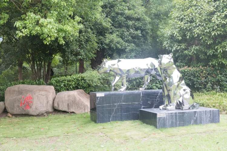 亮点二:受整个园林鸟瞰老虎造型及前期居民反映虎林园无虎征求意见反馈的启发,利用公园一角错落的景观树木和高低分布的石头,采用一动一静的两只猛虎,配合旁边石头上红色的“法”字雕刻,起到了对虎林园点题的作用。