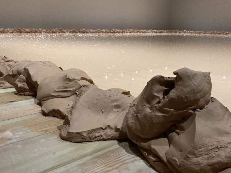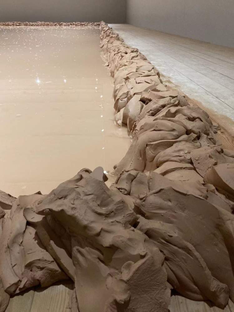上海复星艺术中心三楼变成了一个200多平方米的大“泥沼”——作品《无形之中》由陶瓷粘土和泥浆铺设而成,诞生了无数华美陶瓷器的泥池被如实复原,层叠的泥团上还残留着工匠的独特手感。