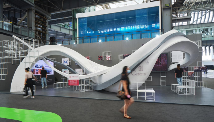 作为本次大会亮点的公共空间艺术装置之一,“未来之眼”由上海交大设计学院张海翱副教授与华建集团携手打造。装置以“未来交互”呼应“设计无界”的大会主题。
