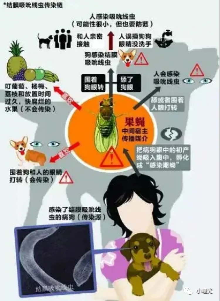 是也寄生在猫、狗肠道内的常见寄生虫,通过消化道传染人类,随着血液循环进入肝、脏、肺、眼等器官,一旦侵犯眼睛,就会造成眼弓蛔虫病。