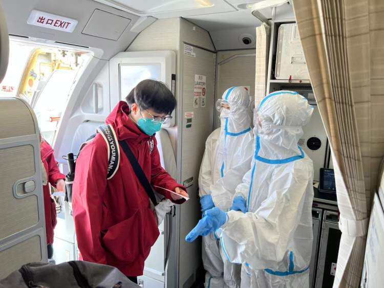 据悉,今年8月中旬,来自陕西、上海和山东等各地的医护人员、核酸检测人员就是搭乘东航航班前往日喀则支援当地抗疫工作。40多个日夜之后,东航机组遵守与医护队员的“美好约定”,再接白衣战士们回家。