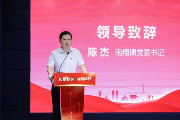南翔镇党委书记陈杰致辞。他强调,今天是一个发布仪式,也是一个新的开始。在探索深化新业态、新就业群体党建工作的征程上,镇组织部门要坚持红“新”相融,当好“指导员”。要担好综合指导之责,深入做好思想引导和凝聚服务工作,持续扩大党的组织覆盖和工作覆盖,进一步提高党在新就业群体中的影响力和号召力。各相关部门、基层党组织要坚持凝“新”聚力,当好“关怀者”。要聚焦新业态、新就业群体的“急难愁盼”,着力破解诉求反馈慢、权益保障难、服务资源少等问题,用贴心服务让他们感受到党委政府的温暖。各行业代表要坚持向“新”而行,当好“带头人”。要发挥职业优势,带领广大新业态、新就业群体积极参与到文明城区创建、社会治理创新等工作中来,展现“聚是一团火,散是满天星”的时代风采,为“小美南翔”的建设贡献智慧和力量。
