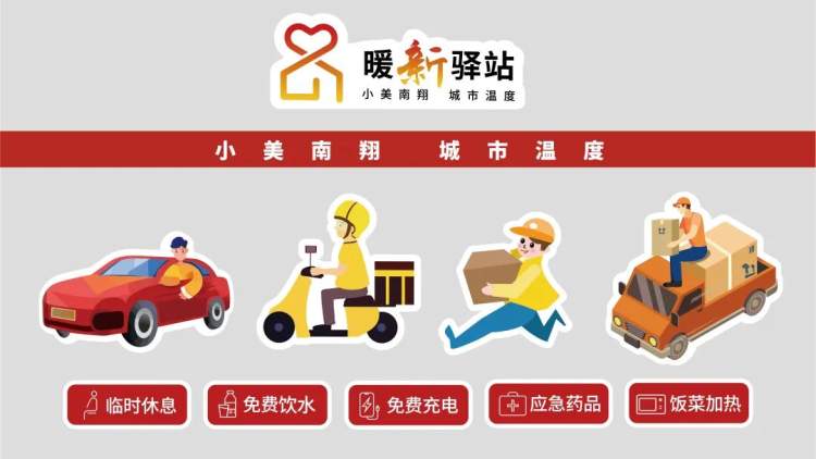 为推进南翔镇新业态、新就业群体党群服务综合体系“星光计划”,加强对新业态、新就业群体的关心关爱和服务保障,依托村(社区)党群服务中心(站)、户外职工爱心接力站、爱心商户、四大运营商、商圈、金融机构、加油站等阵地,构建“1+4+51”综合服务网络,启用全镇56家暖“新”驿站,为快递员、外卖员、货车司机、网约车司机、房产中介员、家政服务员、商场信息员、护工护理员等新业态、新就业群体筑起温馨港湾。
