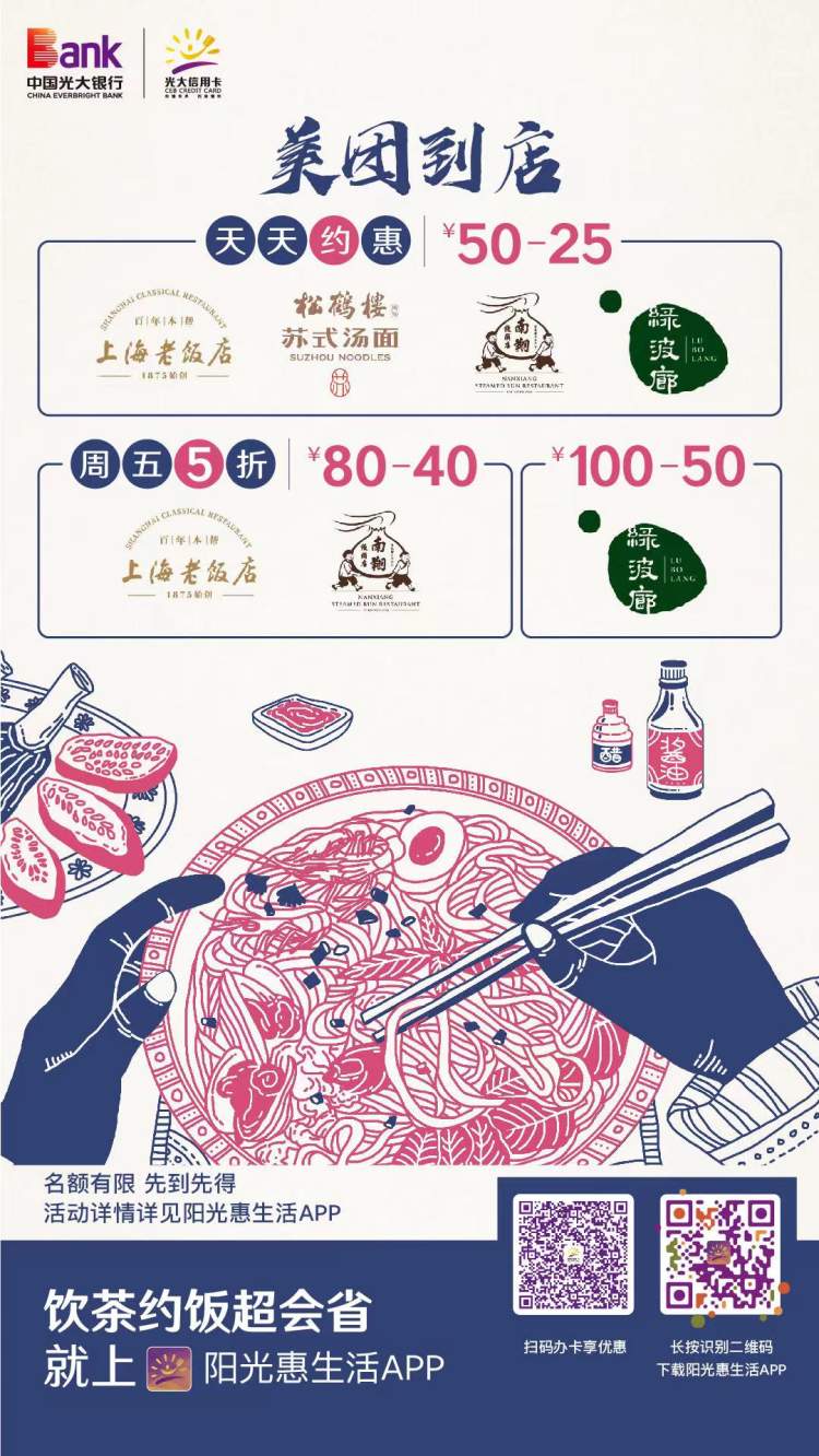 骆骆一向热爱生活,平时就喜欢和小姐妹在上海的各大商城吃吃、玩玩、购购,拥有丰富的“薅羊毛”经验。在城隍庙,拥有一张光大信用卡就可以“支棱”起来,持卡人可以抢购诸多约饭权益,像是知名的上海老饭店、松鹤楼面馆和绿波廊,都有光大美团到店的权益,通过购买饭票权益,加上美团的优惠,可以折上加折,特别适合一家人用餐,十分划算。